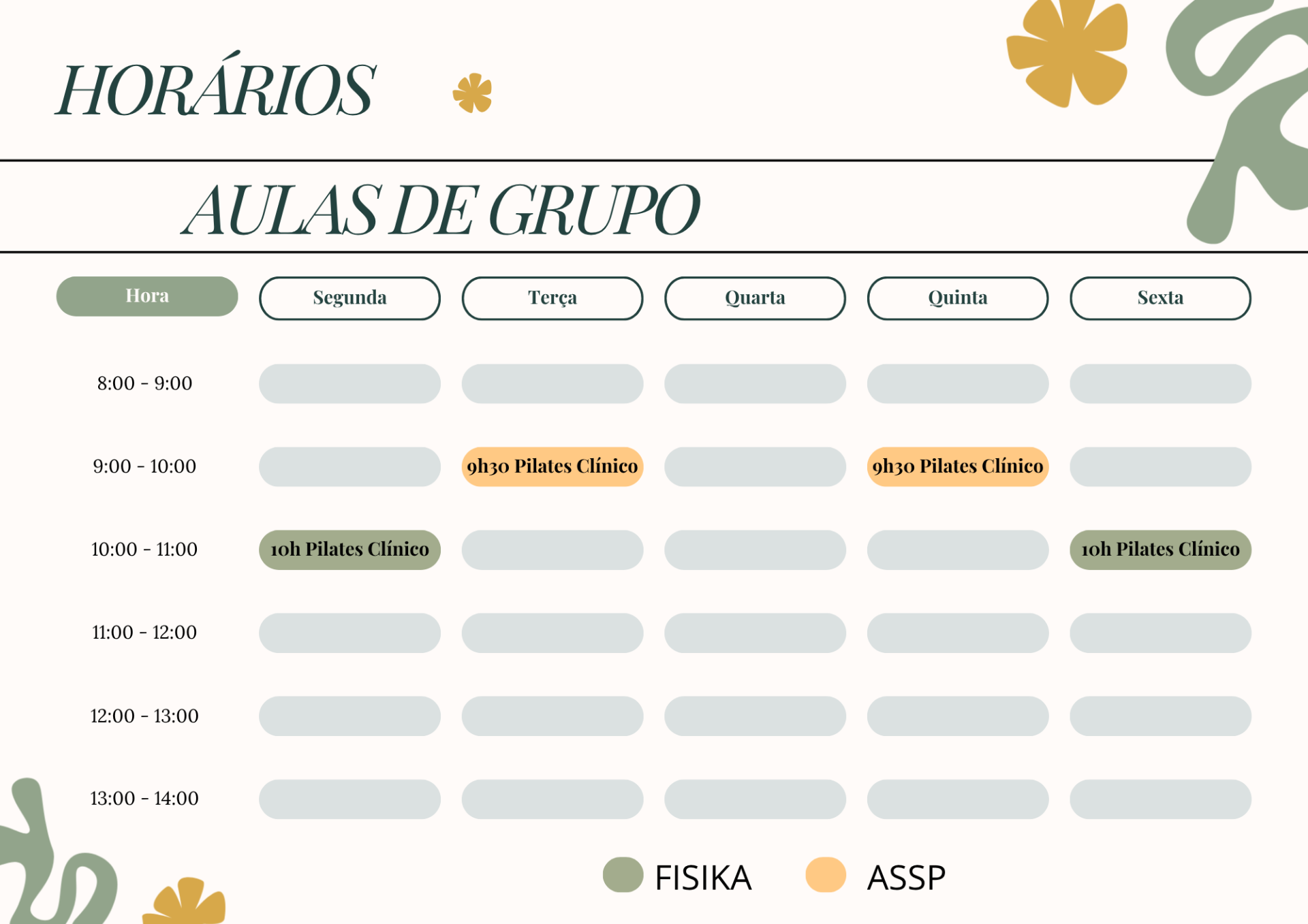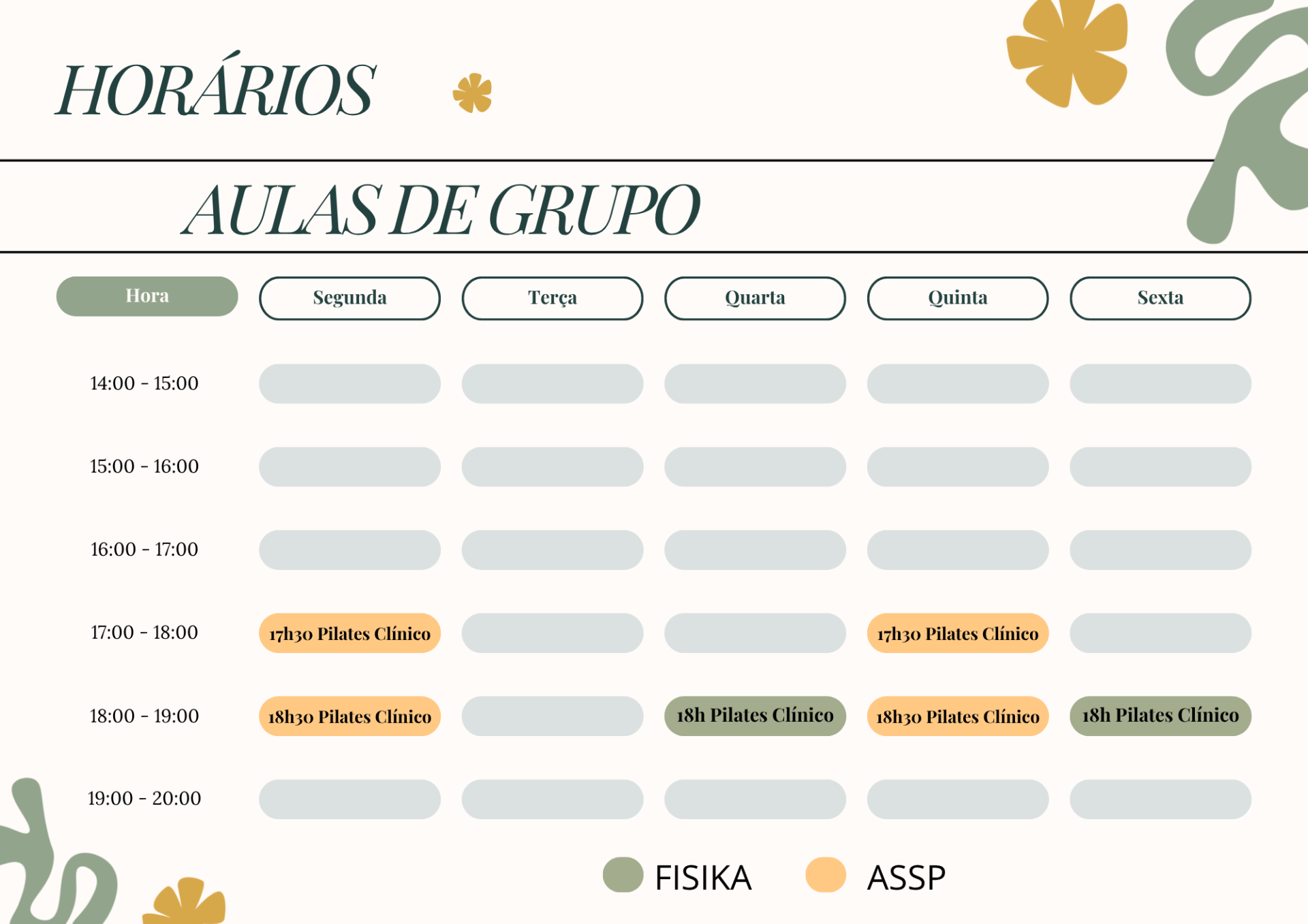 Antes de iniciar as aulas é necessário fazer uma sessão de avaliação onde é realizado uma recolha da sua história clínica pessoal, uma avaliação postural e onde abordamos os princípios do Pilates Clínico.